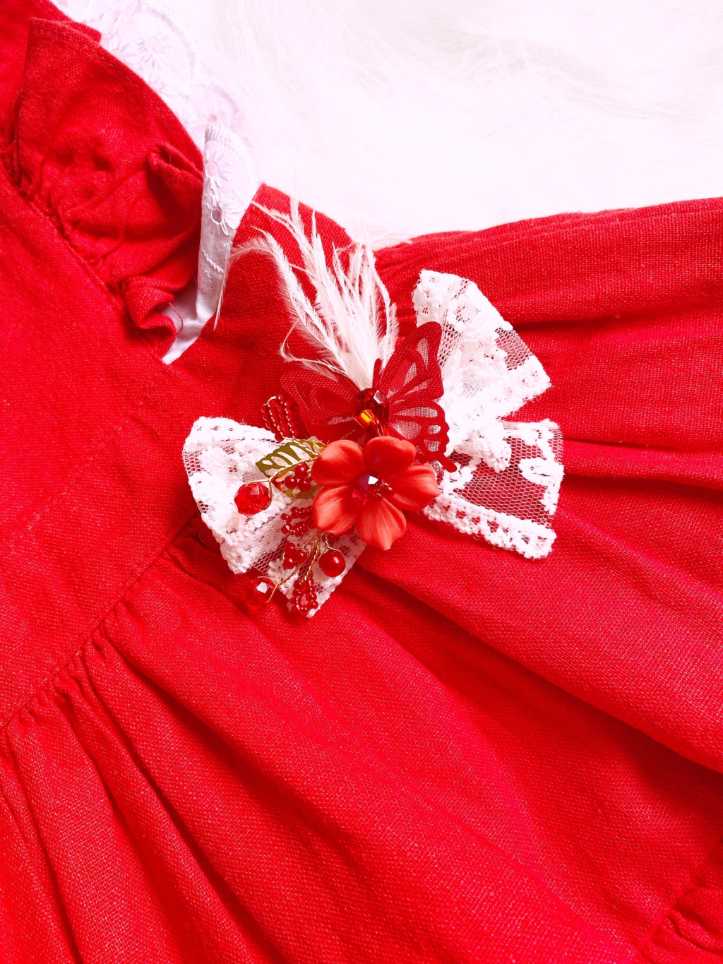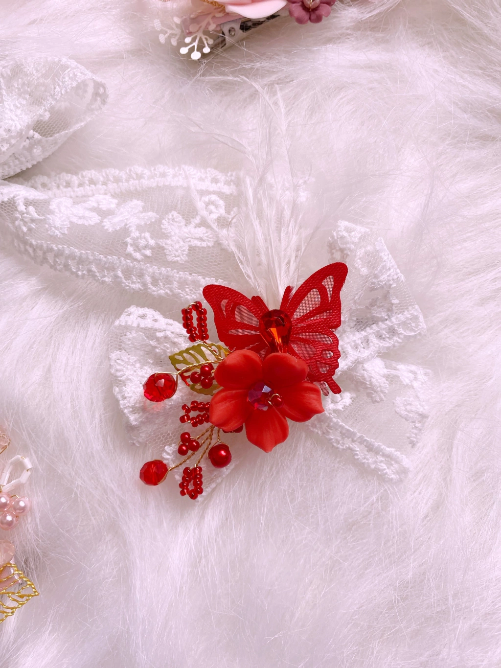 Laço em renda com aplicações de flores, borboletas e detalhes em aramado.